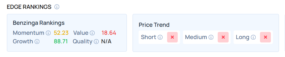 The stock maintains a weaker price trend over the short, medium, and long terms, with Growth as its strongest category, according to Benzinga’s Edge Stock Rankings.