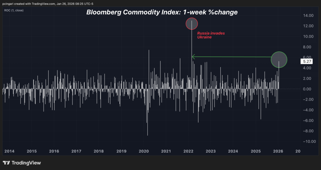 The last time the index surged like this, Russia’s invasion of Ukraine had triggered a global energy shock. Crude oil vaulted above $100 a barrel, European natural gas prices exploded as Russian supply was cut off, and sweeping sanctions on the Kremlin sent commodity markets into chaos.
