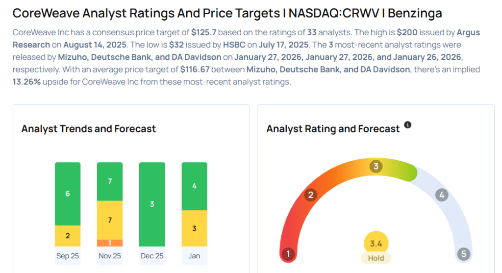 • Deutsche Bank analyst Brad Zelnick upgraded CoreWeave from Hold to Buy and raised the price target from $100 to $140.