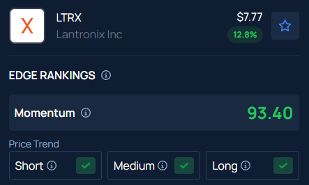 Benzinga’s Edge Stock Rankings indicate that LTRX has a positive price trend across all time frames.