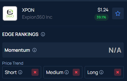 Benzinga’s Edge Stock Rankings indicate that XPON has a negative price trend across all time frames.