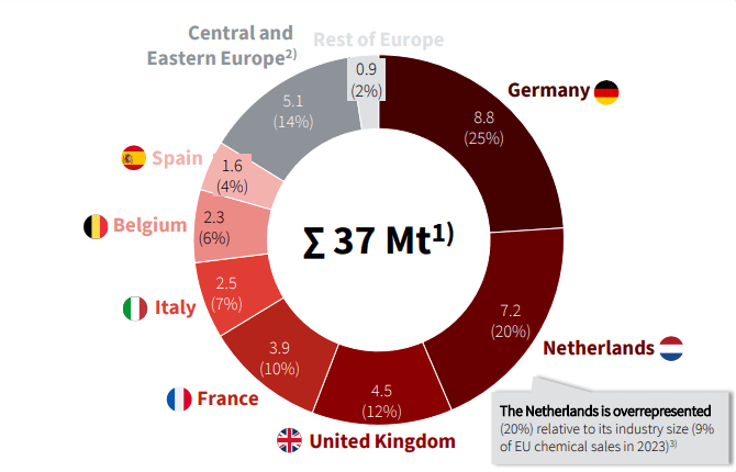 Germany and the Netherlands account for ~45% of the capacity announced for closure, source: Cefic