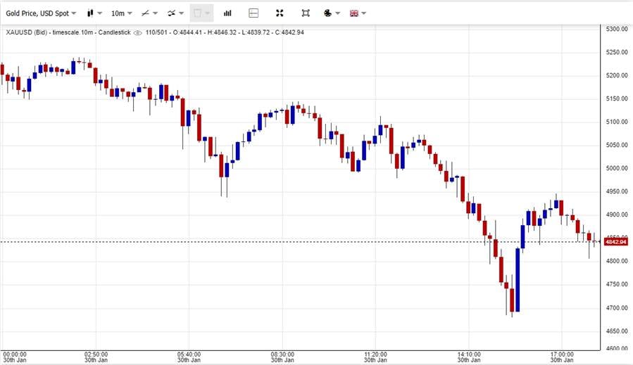 Gold chart showing the 12% correction this Friday