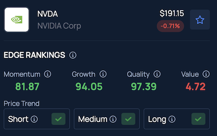 Despite the pullback, Nvidia holds a strong Quality rating in Benzinga’s Edge Stock Rankings, supported by a positive price trend across short, medium and long-term time horizons.