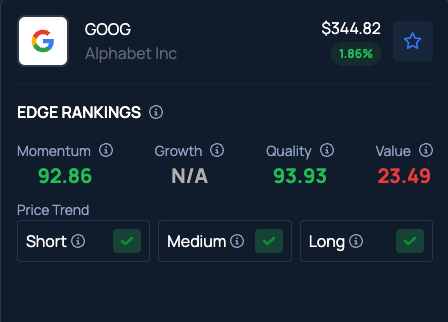 Benzinga Edge Stock Rankings indicate Google Class C stock has a Value in the 23rd percentile. The stock has a Momentum score in the 92nd percentile.