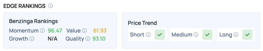 The Verdict: Newmont’s Benzinga Edge signal reveals a strong momentum score, indicating that the stock is currently outperforming the broader market. However, the neutral value score suggests that while the stock is performing well, it is not significantly undervalued, which may warrant caution for new investors.