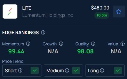 With a strong Momentum in the 99th percentile, Benzinga’s Edge Stock Rankings indicate that LITE has a positive price trend across all time frames.