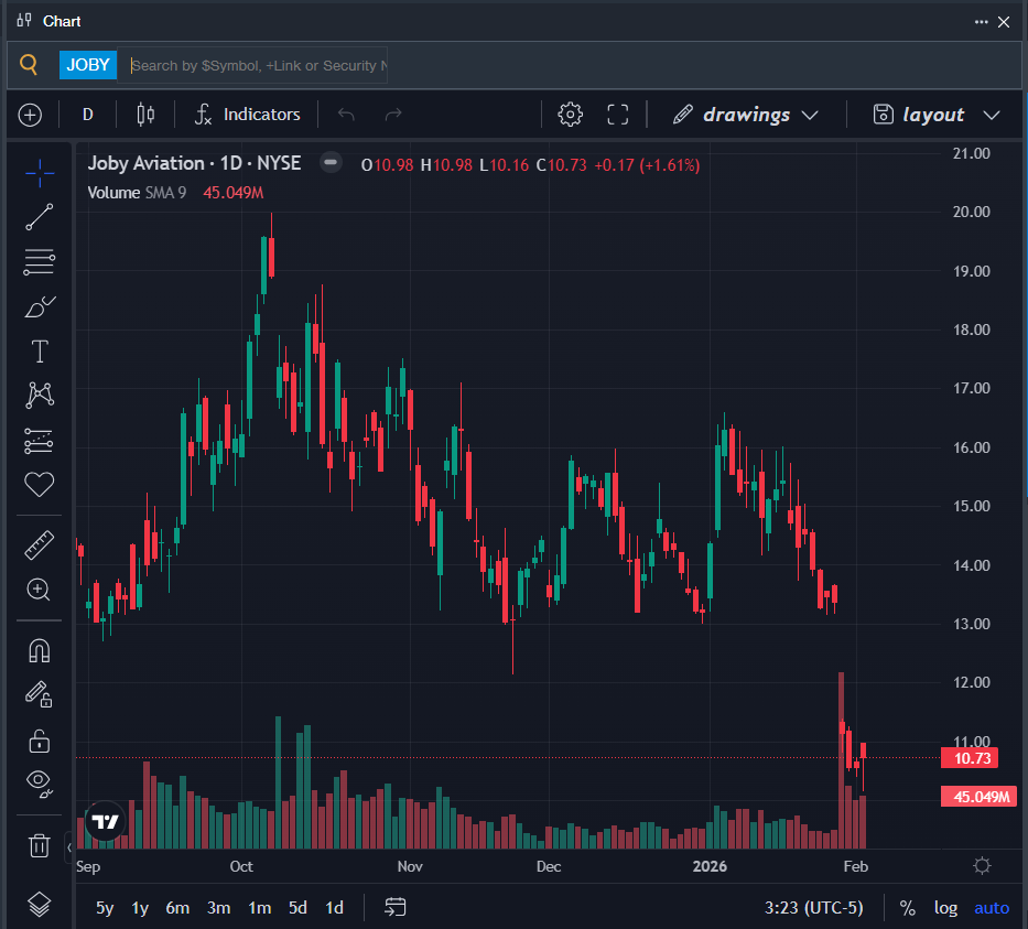 - Benzinga Pro’s charting tool helped identify the trend in JOBY stock.