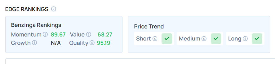 - Edge Stock Ratings: 89.67 Momentum score with Value at 68.27.
