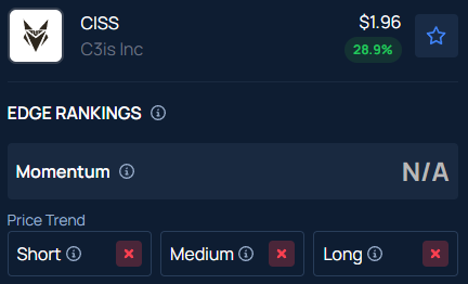 Benzinga’s Edge Stock Rankings indicate that CISS has a negative price trend across all time frames.