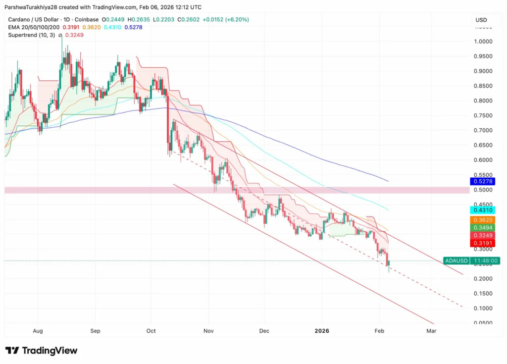 If support around $0.25-$0.26 fails, ADA could accelerate toward $0.20.