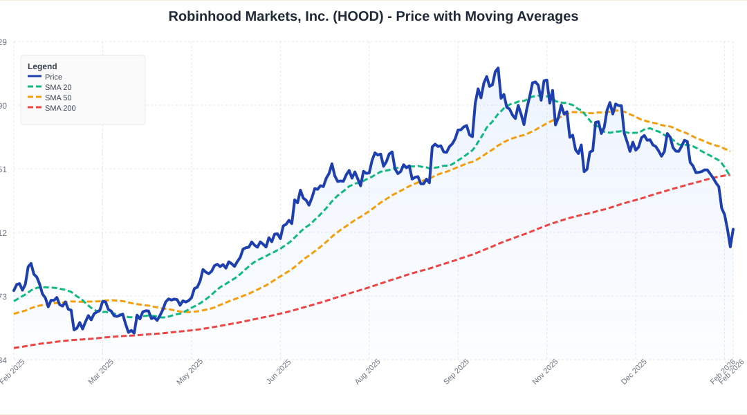 Currently, Robinhood is trading 21.1% below its 20-day simple moving average (SMA) and 34.7% below its 100-day SMA, indicating a bearish short-term trend.