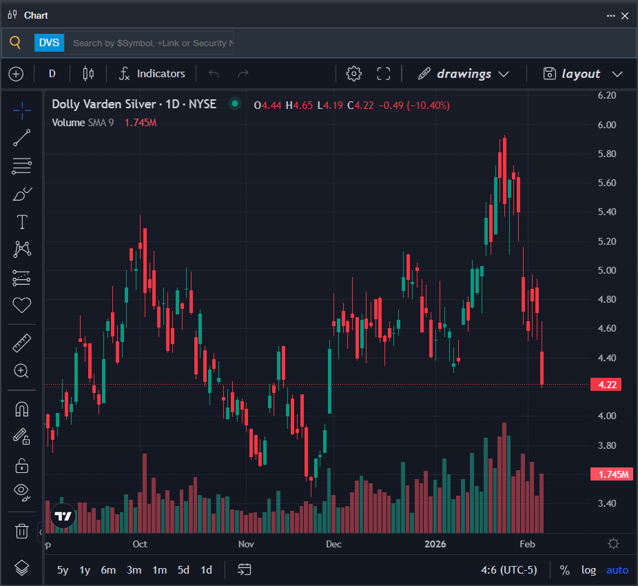- DVS Price Action: Shares of Dolly Varden Silver dipped 10.4% to close at $4.22 on Thursday.