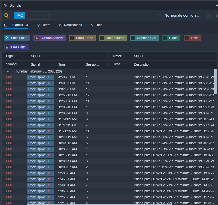 - Benzinga Pro’s signals feature notified of a potential breakout in FMC shares.