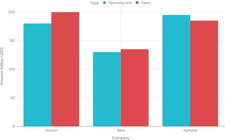 Big Tech’s AI buildout is pushing capex to the edge of, or beyond, their annual operating cash generation.