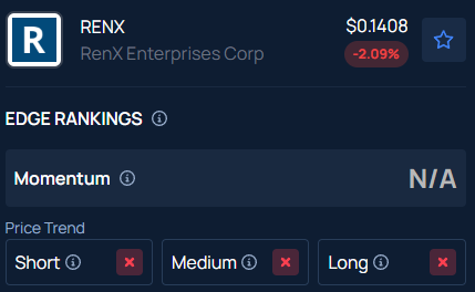 Benzinga’s Edge Stock Rankings indicate that RENX has a negative price trend across all time frames.