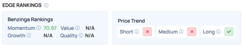 Below is the Benzinga Edge scorecard for Rivian Automotive, highlighting its strengths and weaknesses compared to the broader market: