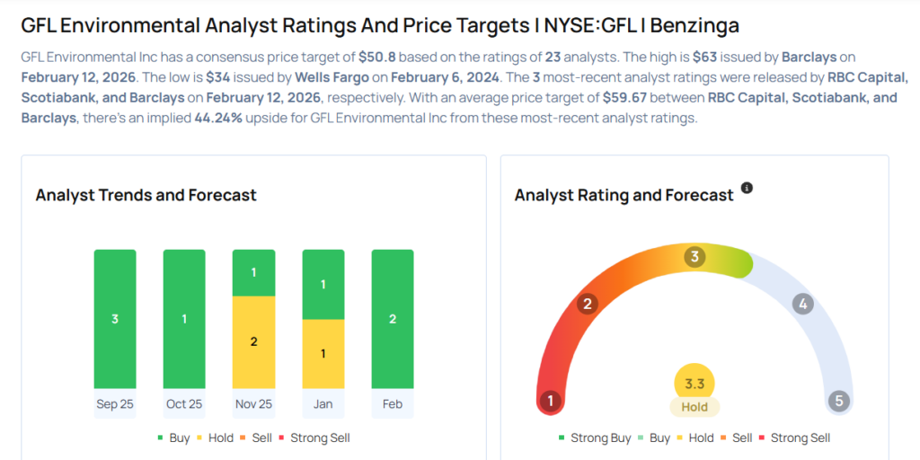 - Barclays analyst William Grippin maintained GFL Environmental with an Overweight rating and raised the price target from $62 to $63.