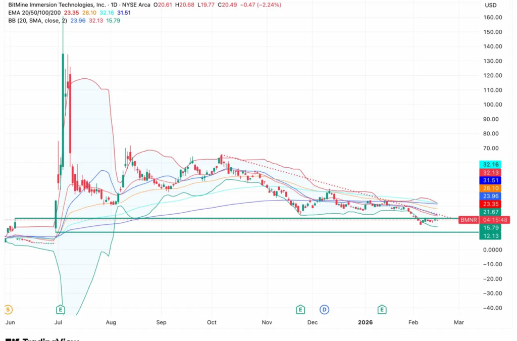 BMNR is grinding toward the critical $15-$17 long-term support zone.