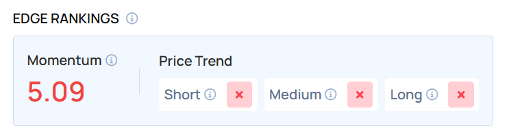Benzinga’s Edge Stock Rankings show IBIT ETF lagging in price trends across short, medium, and long terms, with a weak Momentum score.