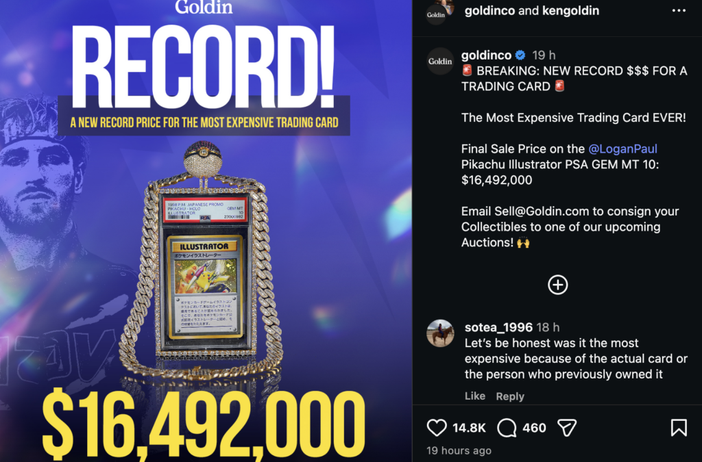 The YouTuber and professional wrestler purchased the Pikachu Illustrator card for $5.3 million in 2021, setting a record at the time. He has now sold it for $16.492 million, including the buyer’s premium, according to auction house Goldin.