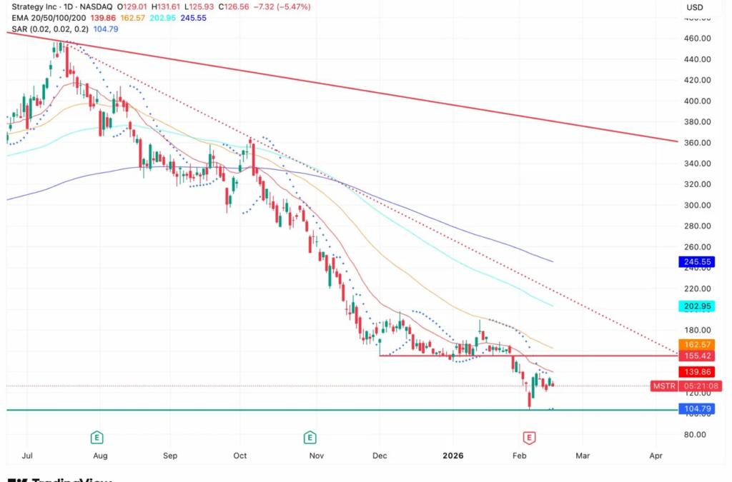 For any stabilization, MSTR needs to stop making new lows and reclaim the 20 EMA at $139.
