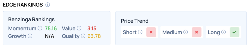 Below is the Benzinga Edge scorecard for Tesla, highlighting its strengths and weaknesses compared to the broader market: