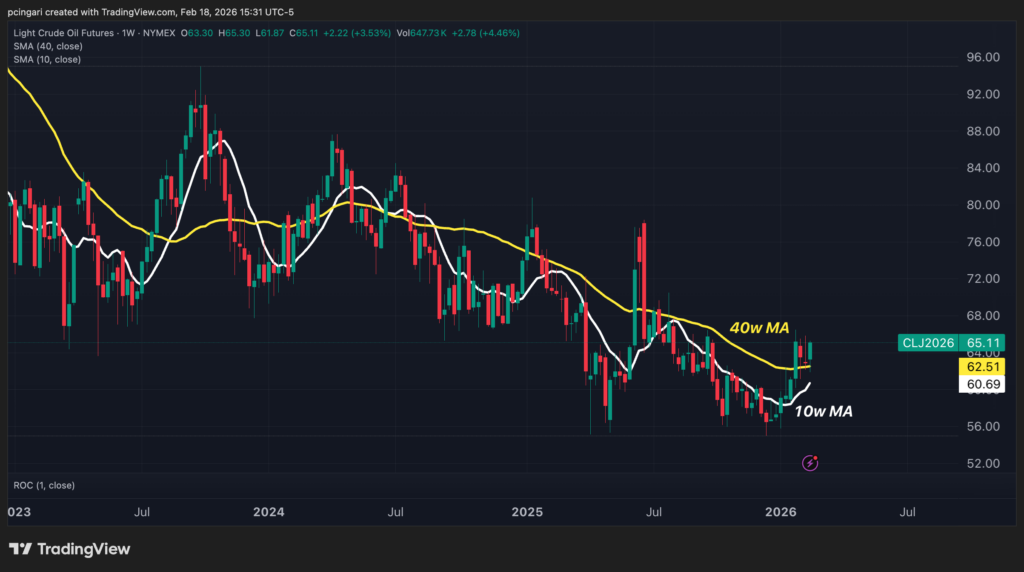 “After all, the front month future contract traded to 78 in June 2025, and the 40-Week MA was still sloping downward. So, if it can move from 60 to 78 with a downward-sloping 40-Week MA it likely can work to 80 with an upward-sloping 40-Week MA,” he said.
