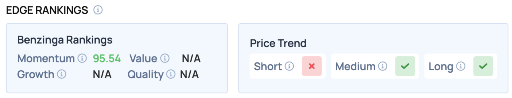 Benzinga Edge stock rankings show Rocket Lab carries a strong Momentum score of 95.54, underscoring its powerful recent price action relative to peers.