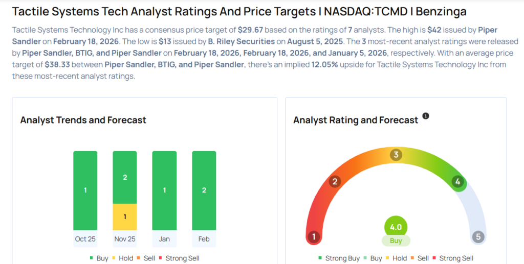 - BTIG analyst Ryan Zimmerman maintained Tactile Systems Tech with a Buy and raised the price target from $36 to $38.