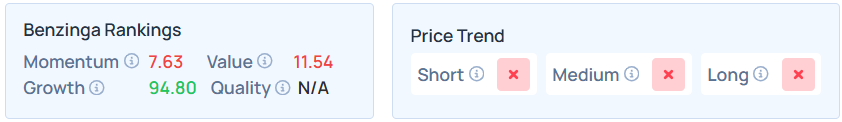 • DASH maintains a weaker price trend over the long, short, and medium terms, with a solid growth ranking, as per Benzinga’s Edge Stock Rankings.