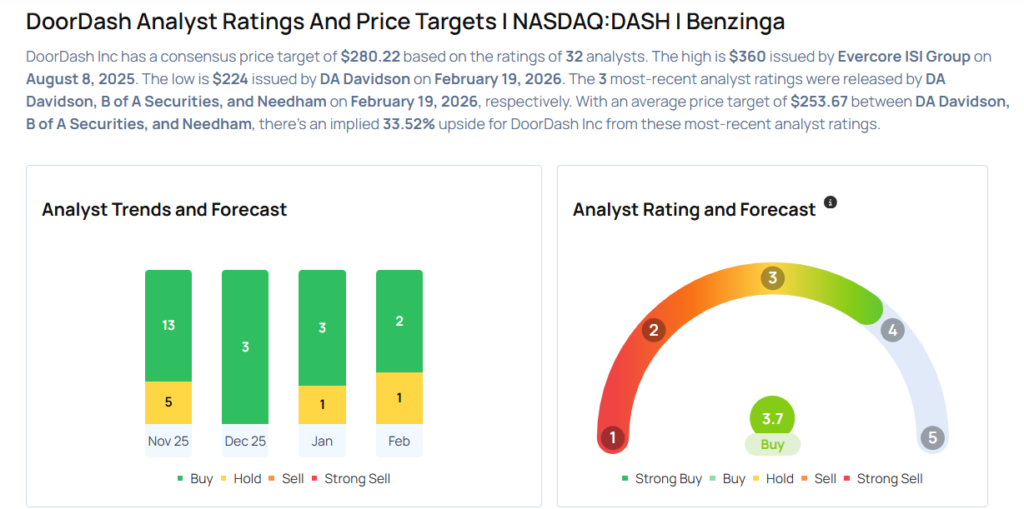 - DA Davidson analyst Tom White maintained DoorDash with a Neutral and lowered the price target from $260 to $224.