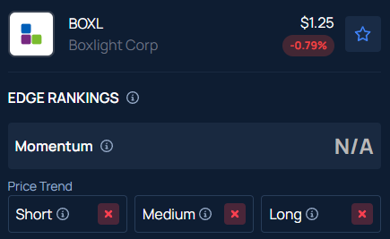 Benzinga’s Edge Stock Rankings indicate that BOXL has a negative price trend across all time frames.