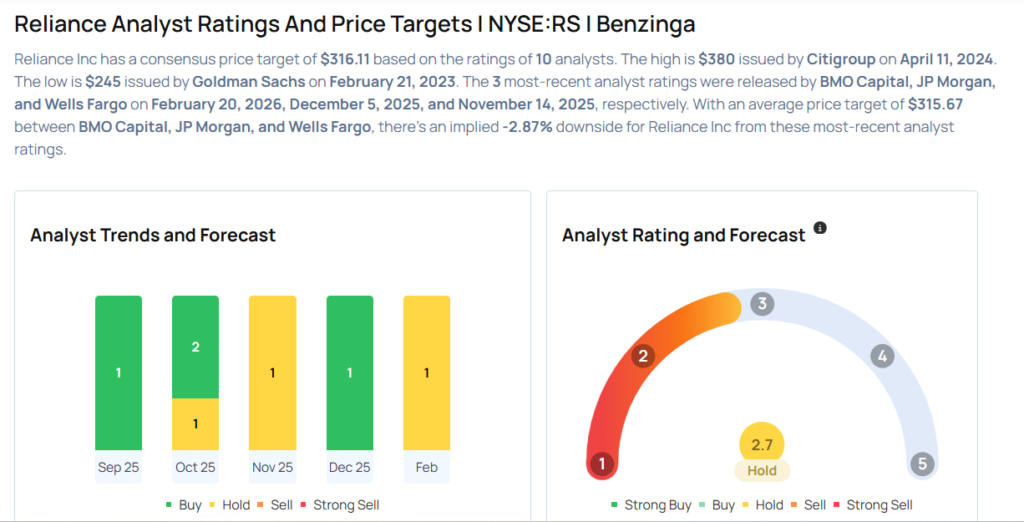 - BMO Capital analyst Katja Jancic downgraded Reliance Inc (NYSE:RS) from Outperform to Market Perform and lowered the price target from $340 to $320. Reliance shares closed at $327.28 on Thursday. See how other analysts view this stock.