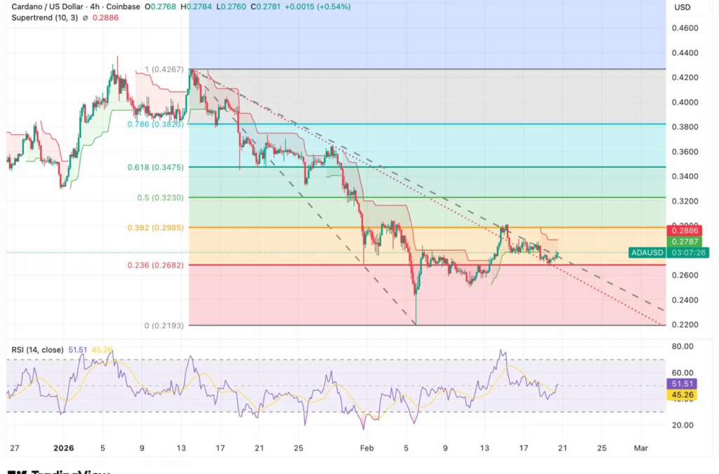 Cardano recently fell out of the top 10 cryptocurrencies by market cap, trading at $0.2781 and stuck in a consolidation range.
