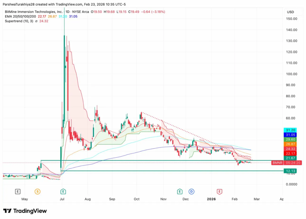 For recovery, BMNR needs to stabilize immediately, reclaim $20, then push above $22 and the 20 EMA.