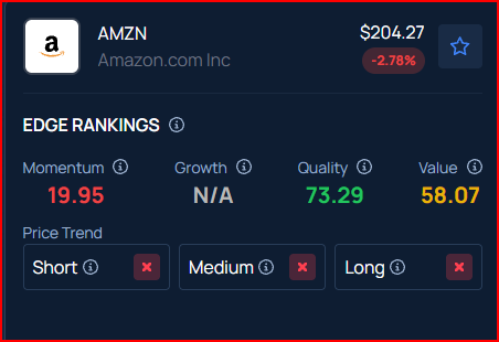 Benzinga’s Edge Rankings place Amazon in the 73rd percentile for quality and the 58th percentile for value, reflecting its strong performance. Benzinga’s screener allows you to compare Amazon’s performance with its peers.