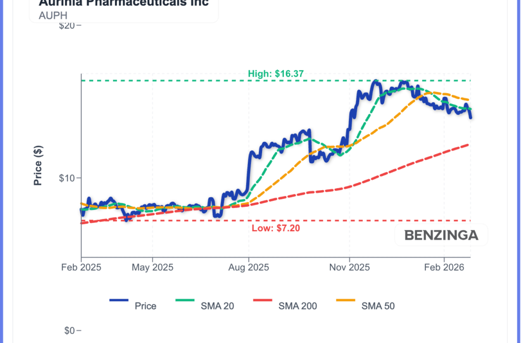 AUPH has traded in a $7.20–$16.37 range over the past year, breaking out in mid-2025 and rallying into the mid-teens with a peak near $16.37 in late 2025.