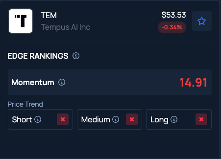 Benzinga Edge Stock Rankings indicate Tempus AI stock has Momentum in the 14th percentile.