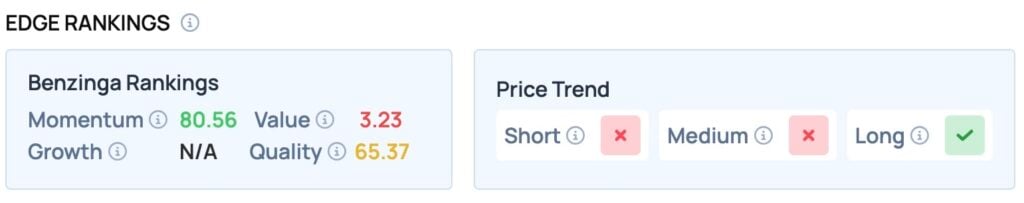 Benzinga Edge Rankings show that Tesla scores well on the Momentum metric and offers a favorable price trend in the Long Term.