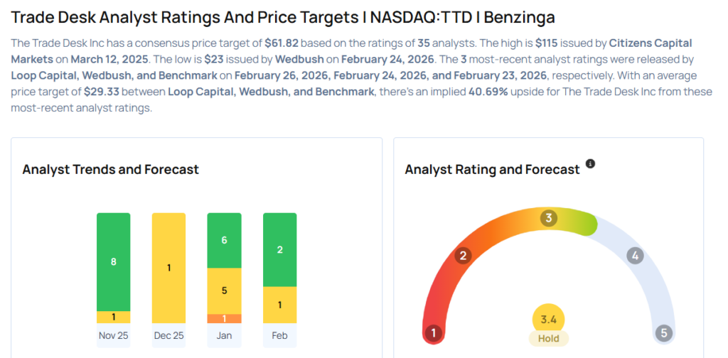 - Loop Capital analyst Rob Sanderson downgraded Trade Desk Inc (NASDAQ:TTD) from Buy to Hold and slashed the price target from $75 to $25. Trade Desk shares closed at $25.16 on Wednesday. See how other analysts view this stock.