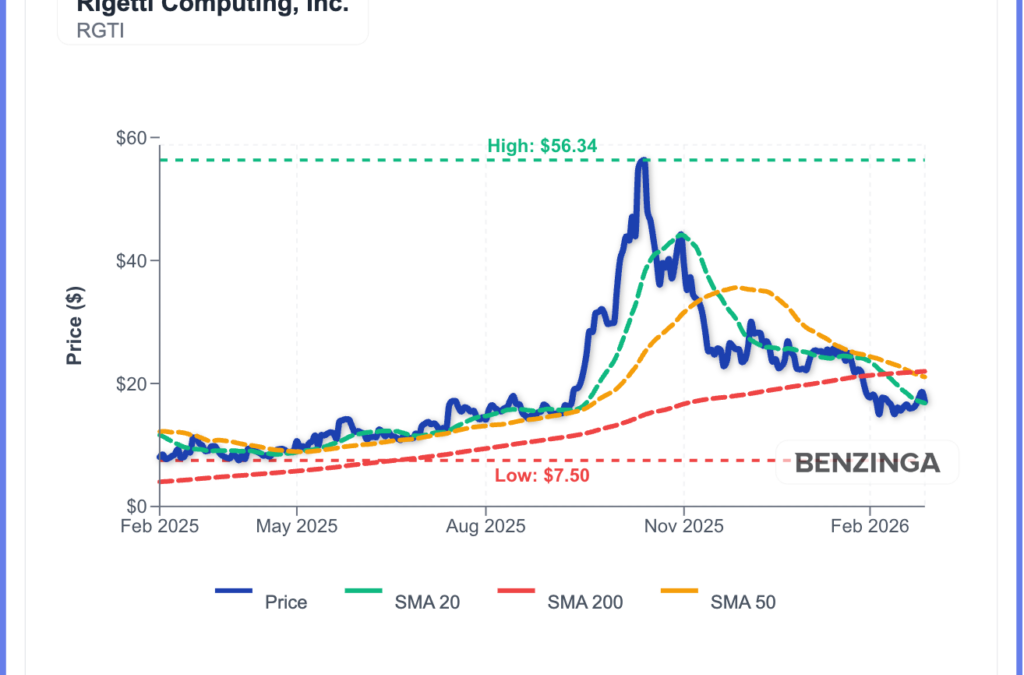 Rigetti Computing shares have had a volatile past year, climbing from around $7.50 to a peak near $56.34 in late 2025 before sliding back into the high-teens by February 2026.