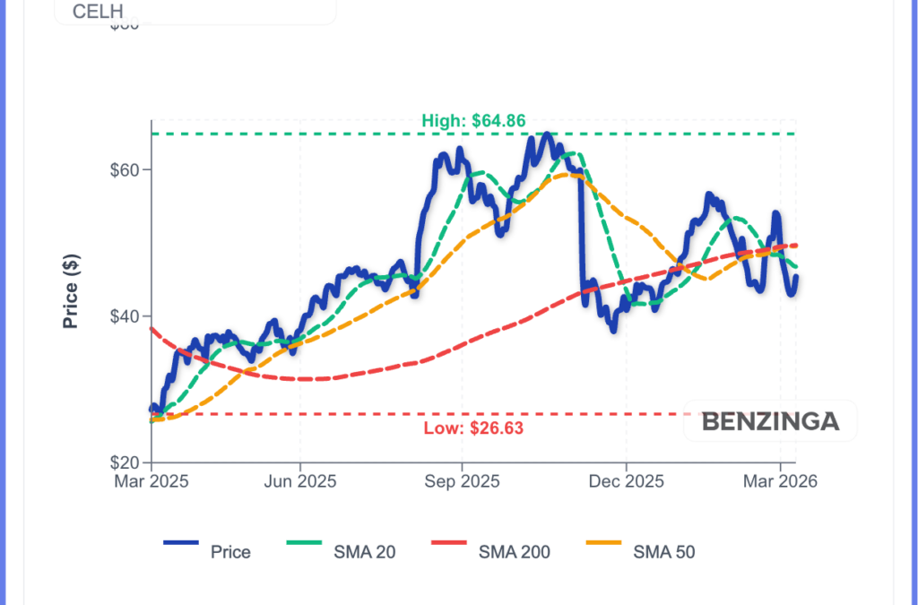 CELH Stock Trades Near Key Moving Averages After Volatile Year