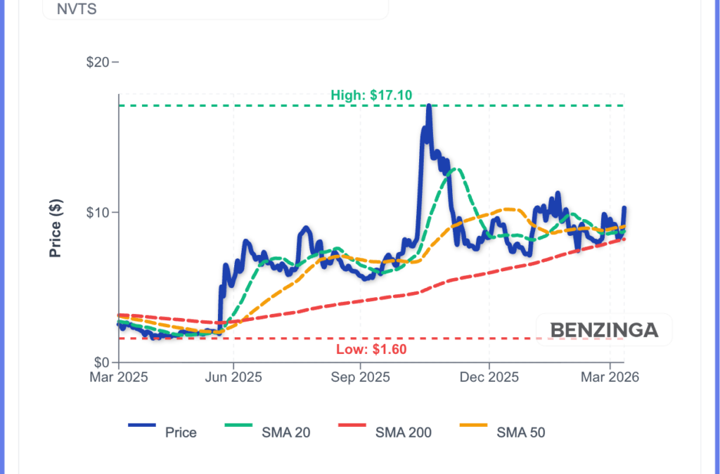 NVTS Price Action: Navitas Semiconductor shares were up 20.52% at $10.46 at the time of publication on Wednesday, according to Benzinga Pro data.