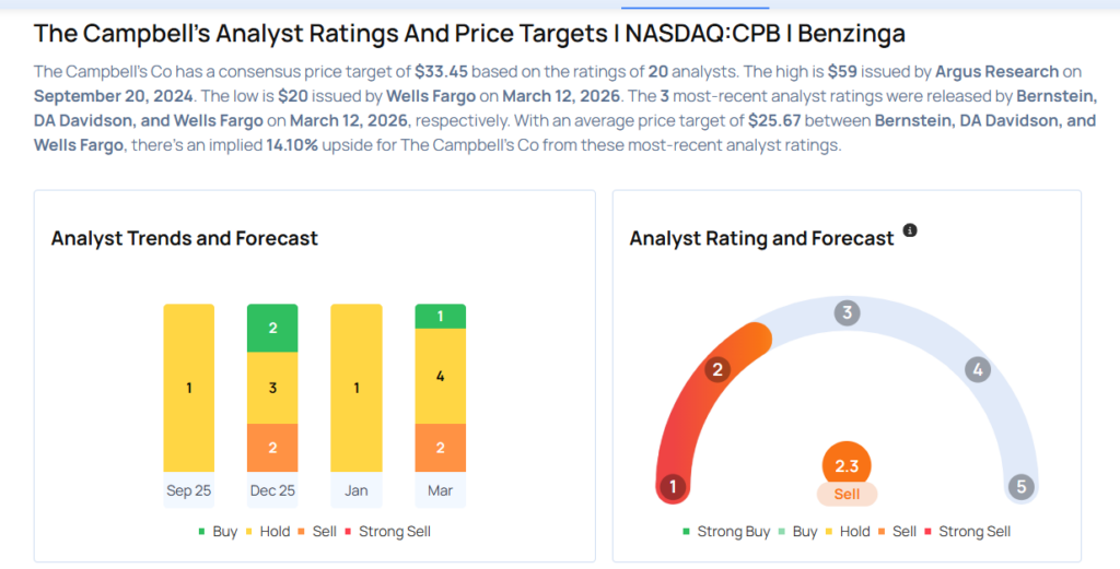 • Stifel analyst Matthew Smith maintained Campbell’s with a Hold and lowered the price target from $30 to $25.