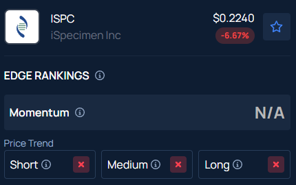 Benzinga’s Edge Stock Rankings indicate that ISPC has a negative price trend across all time frames.