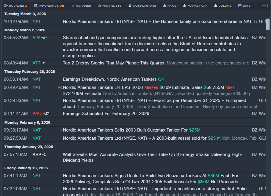 • Benzinga Pro’s real-time newsfeed alerted to latest NAT news.
