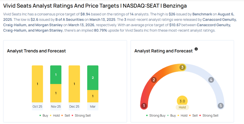 - Benchmark analyst Daniel L. Kurnos maintained Vivid Seats with a Buy and lowered the price target from $18 to $10.