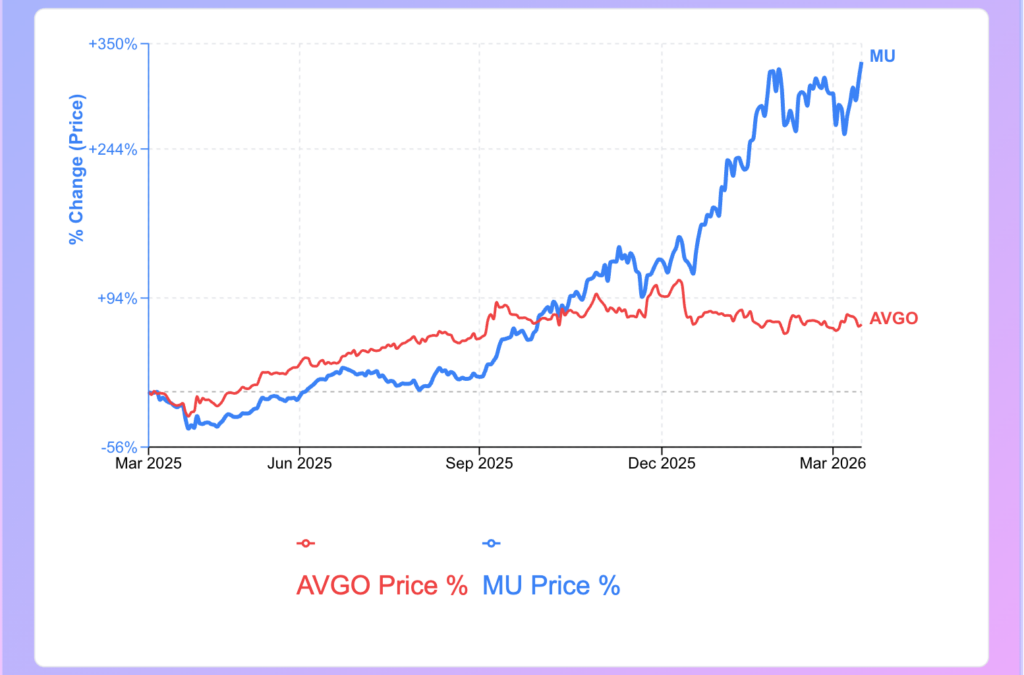 Micron offers pure‑play leverage to AI memory pricing, whereas Broadcom combines AI infrastructure exposure with recurring software cash flows, giving investors two differentiated but complementary ways to stay long the AI theme into 2027.