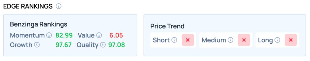 Benzinga Edge Stock Rankings show that Nvidia scores well on the Growth, Momentum, and Quality metrics.
